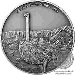 Struś Gabon 2014 Srebro 1 Oz 2[zasłonięte]014 10 Fr. Nowe!