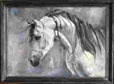 Płótno 50x70, obraz zabezpieczony werniksem. Oprawiony w ramę drewnianą szer. 6cm.