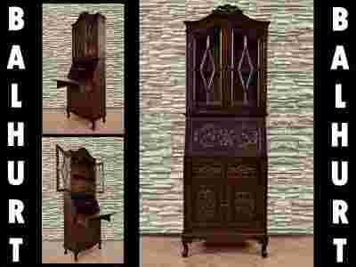 STYLOWA DREWNIANA RZEŹBIONA WITRYNA SEKRETARZYK