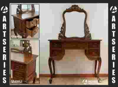 STYLOWA DREWNIANA TOALETKA KONSOLA Z LUSTREM DĄB