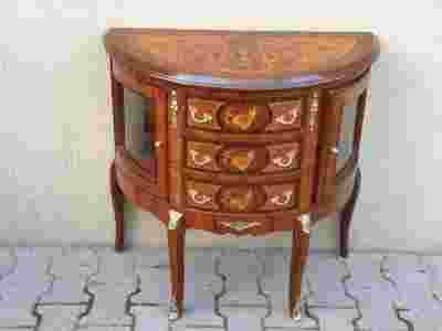 STYLOWA KOMODA INTARSJOWAN Z OKUCIAMI I SZYBKAMI