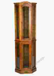 delikatnie rzeźbiony, wyposażony w przeszklone fronty. Witryna złożona z dwóch części skręcanych ze sobą.