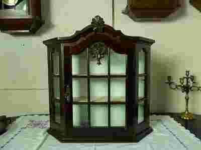 Stylowa witryna z aplikacja drewnianą. Drzwiczki oszklone zamykane na kluczyk. Wnętrze witryny białe. Półeczki wykończone złotym paskiem. Niezwykle elegancka.idealna do stylowej kuchni lub łazienki i nie tylko.