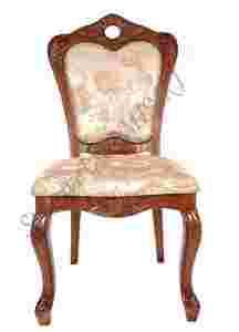 Stoi na lekko giętych nogach, posiada miękkie i wygodne siedzisko oraz oparcie pokryte tapicerką satynową w kolorze złoto beżowym (z połyskiem).