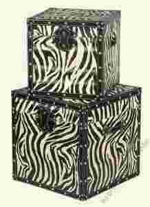 Na tej aukcji pragnę przedstawić stylowy komplet kufrów "ZEBRA" czarno białych,  wykonana z MDF i drewna, pokryta okleiną imitującą skórę zebry o delikatnym połysku.