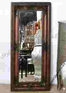 Szkło kryształowe, fazowane, w grubej, masywnej ramie drewnianej w kolorze ciemnobrązowym,