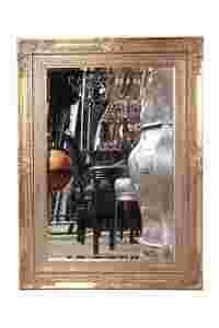 Szkło kryształowe, fazowane, w grubej, masywnej ramie drewnianej,