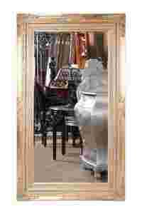 Szkło kryształowe, fazowane, w grubej, masywnej ramie drewnianej,