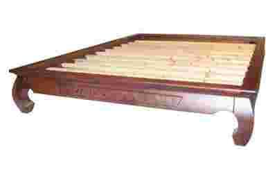 Łóżko-rama wykonane jest w całości z litego drewna, ręcznie zdobione, zabejcowane na kolor orzech-kasztan i lakierowe na półmat.