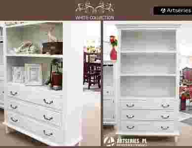 STYLOWY BIAŁY DREWNIANY REGAŁ BIBLIOTEKA