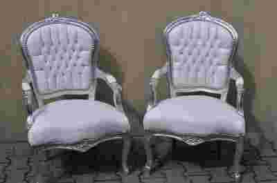 STYLOWY FOTEL LUDWIK BIAŁO-SREBRNY.FOTEL