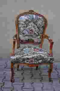 STYLOWY FOTEL LUDWIK Z TAPICERKĄ -GOBELIN I DREWNO