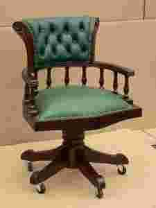 STYLOWY FOTEL OBROTOWY z MAHONIU SKÓRA EKOLOGICZNA