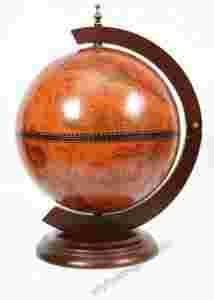 na powierzchni kuli jest przedstawione odwzorowanie starej mapy świata.