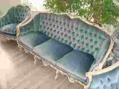 WITAM DZIŚ MAM DO ZAOFEROWANIA KOMPLET STYLOWY WYGODNA KANAPA PLUS DWA FOTELE LUDWIK PRAWIE JAK ANTYK , KOMPLET PIĘKNIE RZEZBIONY I WYKOŃCZONY PIKOWANY MATERIAŁ W KOLORZE LAZUROWEGO BŁĘKITU ,PINEZKI W KOLORZE ZŁOTA Z DREWNA W KOLORZE ECRU I ZŁOTA PIĘKNIE RZEŻBIONE ,IŚĆIE SALONOWY KRÓLEWSKI KOMPLET UŻYWANY NA CODZIEŃ , OD KILKU LAT, W DOMU NIE MA ZWIERZĄT ORAZ SIE NIE PALI OBICIE BEZ PLAM, PRZEBARWIEN I PRZETARC CZY DZIUR , PODUCHY Z KANAPY ORAZ FOTELA ZDEJMOWANE ...PIĘKNIE SIĘ PREZENTUJE NA ŻYWO SZEROKOŚC SIEDZISKA KANAPY 162CM , GŁEBOKOŚC SIEDZISKA 57CM , WYSOKOSĆ KANAPY OKOŁO 80 CM ZALEZY W JAKIM PUNKCIE , SZEROKOSĆ OK 193CM , WYSOKOSĆ SIEDZISKA OD PODŁOGI OKOLO 23 CM SZEROKOSĆ SIEDZISKA FOTELA 54 CM , GŁĘBOKOŚĆ SIEDZISKA FOTELA OKOŁO 60 CM , SZEROKOSĆ FOTELA OK 88CM ZALEZY W KTÓRY PUNKCIE , WYSOKOSĆ SIEDZISKA OD PODŁOGI OKOLO 23 CM , PODUSZKI CZARNE ORAZ JASNE Z NADRUKAMI , ZE ZDJEC NIE SA PRZEDMIOTEM AUKCJII ZE WZGLĘDU NA GABARYTY TYLKO ODBIÓR OSOBISTY TRÓJMIASTO WOJ. POMORSKIE , POLECAM I ZAPRASZAM NA INNE MOJE AUKCJE GDZIE SPRZEDAJE RZECZY KTÓRE SA MOJĄ WŁASNOSCIA DŁUZEJ NIZ ROK ...