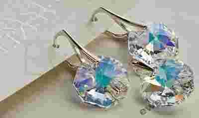 Stylowy komplet Swarovski Octagon 14 AB Crystal