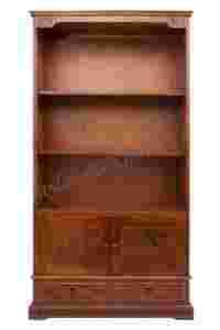 Mebel wykonany z litego drewna egzotycznego w kolorze dębowym.