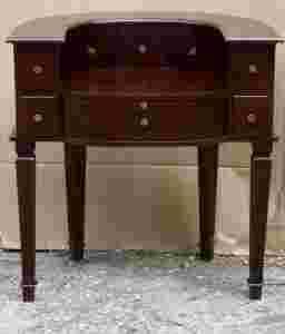 Ten mebel o pięknych proporcjach został wykonana ręcznie z mahoniu. Szeroki i wygodny blat pozwoli na wykonywanie prac biurowych.