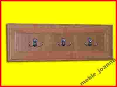 Wieszak wykonany z wysokiej jakości płyty laminowanej o grubości 18mm w kolorze Olcha. Front wieszaka ramkowy wykonany w technologii płycinowej. Wieszak posiada trzy zawieszki metalowe w kolorze chromu.