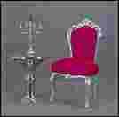 Stylowe i efektowne krzesełko .Dekoracyjny wygląd to przede wszystkim zasługa jego twórcy ponieważ mebel został wykonany tzw.techniką ,, hand made,, czyli ,ze jest to robota ręczna której wykonawca z wielkim kunsztem i finezją wiernie odwzorował elementy charakterystyczne dla epoki baroku. Zgrabny profil oraz solidna i stabilna konstrukcja fotela wykonana została z drewna bukowego pokrytego powłoką srebrzoną (płatkowaną) i umyślnie patynowaną z delikatnymi przetarciami aby sprawiała wrażenie mebla antycznego. Siedzisko obszerne i wygodne na sprężynach z dodatkiem tworzywa piankowego