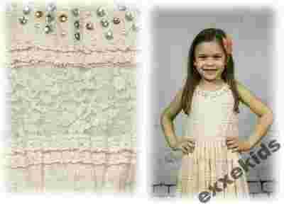 Sukienka ażurowa, BRZOSKWINIOWA, rozm. 134-140