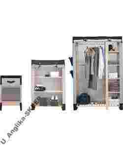 Piękny szary trzyczęściowy zestaw mebli (regał, szafa, szuflada).