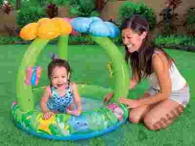Śliczny basenik w kwiatki, z podwójnym dmuchanym dnem. Może służyć jako fantastyczny plac zabaw dla najmłodszych dzieci. Polecamy go dla maluszków już od 3 miesiąca życia. Dzięki podwójnemu dnu można na kocyku bezpiecznie położyć maleństwo.