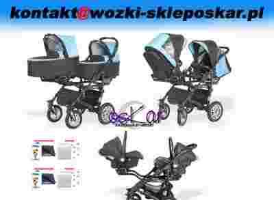 WÓZEK TWINNY 3 w 1 (2 x gondola + 2 x spacerówka+2 x fotelik)