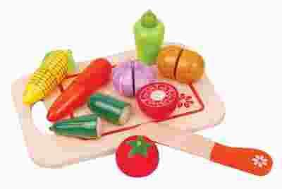 Przedstawiamy zestaw do zabawy z warzywami. Pociechy które wyjątkowo lubią obserwować co sie dzieję w kuchni mogą spróbować swoich sił na drewnianej desce z warzywami, których części połączone są za pomocą rzepa.