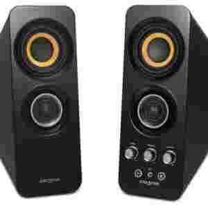 Eleganckie wykończenie błyszczące czarnym lakierem fortepianowym oraz kontrastujące z nim żółte obwódki przetworników i srebrne detale sprawiają, że głośniki Creative T30 doskonale komponują się z każdym wnętrzem.