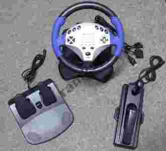 Kierownica do gier – wyścigów samochodowych -kompatybilna z każdą konsolą PS2, PSX, jak również GAMECUBE i XBOX oraz działa z komputerami PC z portem USB.