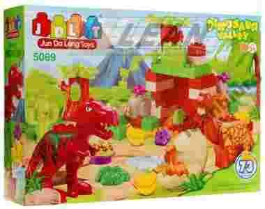 Zestaw klocków różnej wielkości, łatwo wciskających się jeden w drugi oraz duża liczba elementów dekoracyjnych, pozwoli początkującym miłośnikom dinozaurów stworzyć swoją własną, niepowtarzalną Dolinę Dinozaurów.
