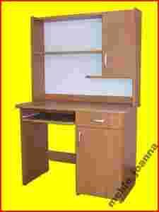Biurko i nadstawka wykonane z wysokiej jakości płyty laminowanej o grubości 18mm w kolorze olcha. Blat i wysuwna półka pod klawiaturę zaowalone wykończone miękkim profilem PCV w kolorze laminatu. Biurko posiada szufladę osadzoną na plastykowych prowadnicach i praktyczną szafkę w której znajduje się półka. W nadstawce znajdują się dwie półki i szafeczka.Uchwyty szuflad i szafek plastykowe w kolorze satynowym. Biurko stoi na plastykowych ślizgaczach.