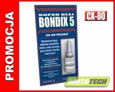 BONDIX-5 - Klej nowej generacji w specjalnie zaprojektowanej nie zatykającej się butelce. Błyskawicznie łączy większość powierzchni: drewno, metal, porcelanę, gumę, ceramikę.