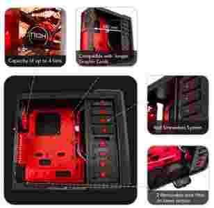 Kolor: czarny, wnętrze czerwono-czarne, przód podświetlony czerwonym wentylatorem LED