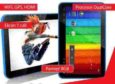 Tablet posiada 7 calowy ekran pojemnościowy. Procesor: DualCore 2x1.2GHz