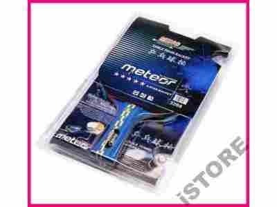 Profesjonalna rakietka METEOR MING ***** z rączką typu CONCAVE, jest bardzo lekką rakietką produkowaną z zastosowaniem najwyższej jakości drewna, pianki PU oraz gumy. Nowa technologia pozwala na wytworzenie okleiny spełniającej wysokie wymagania tenisisty, a optymalną szybkość osiągamy dzięki użyciu odpowiednio elastycznej i sprężystej gumy zapewniającej bardzo dobrą kontrolę. Rakietka została zaprojektowana specjalnie dla osób zaawansowanych, posiada licencję ITTF. METEOR MING jest najlepszym wyborem dla graczy ofensywnych grających technicznie, stawiających na maksymalny spin i kontrolę.