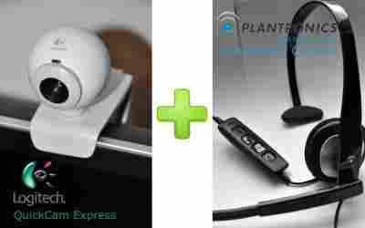 Kamera internetowa Logitech QuickCam Express + słuchawka z mikrofonem Blackwire C210-M od wiodącej firmy na rynku Plantronics.