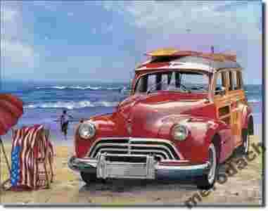 Surfing retro auto USA metalowy plakat vintage