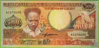 SURINAM 500 Gulden 1988 P135b UNC AC Tukan