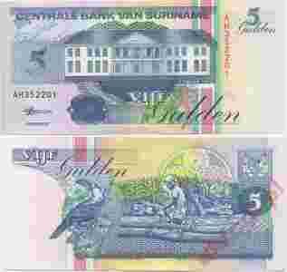 SURINAM 5 Guldenów 1998 Stan I UNC Ptak GULDEN p136 SURINAME.