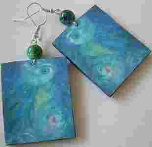 SURREALIZM LAZUROWE KOLCZYKI DECOUPAGE AUTORSKIE