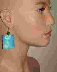 SURREALIZM LAZUROWE KOLCZYKI DECOUPAGE AUTORSKIE
