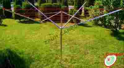 - Suszarkę montuje się w ogrodzie za pomocą tulei (widocznej na zdjęciu w galerii), oczywiśćie dołączonej gratis do zestawu. Suszarka obraca się w tej tuleji i dzięki temu ułatwione jest rozwieszanie, bo nie trzeba przechodzić z ciężkim koszem prania wokół suszarki.