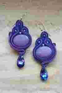 Wykonane w tonacji fioletowo-lila-szafirowej z fasetowanym jadeitem, kroplą Swarovskiego w kolorze heliotrope (opalizujący fiolet z szafierm) i japońskimi koralikami TOHO.