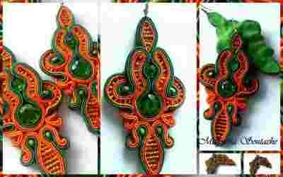 SUTASZ KOLCZYKI POMARAŃCZOWE ZIELONE ETNO FOLK