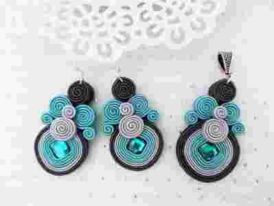 Sutasz komplet dwustronny kolczyki+zawieszka