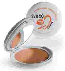 SVR 50 Compact daje efekt nietłustego, pudrowego make-up, stapiającego się ze skórą. Pokrywa wszelkie niedoskonałości skóry takie jak naczynka, przebarwienia, bielactwo, ujednolicając koloryt skóry.