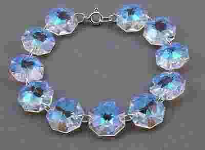 SWAROVSKI CRYSTAL BLUE AB BRANSOLETKA SREBRO