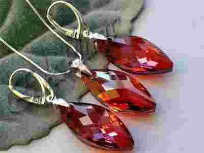 Swarovski Crystal Navette Red Magma Cudny Zestaw